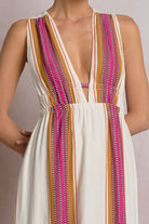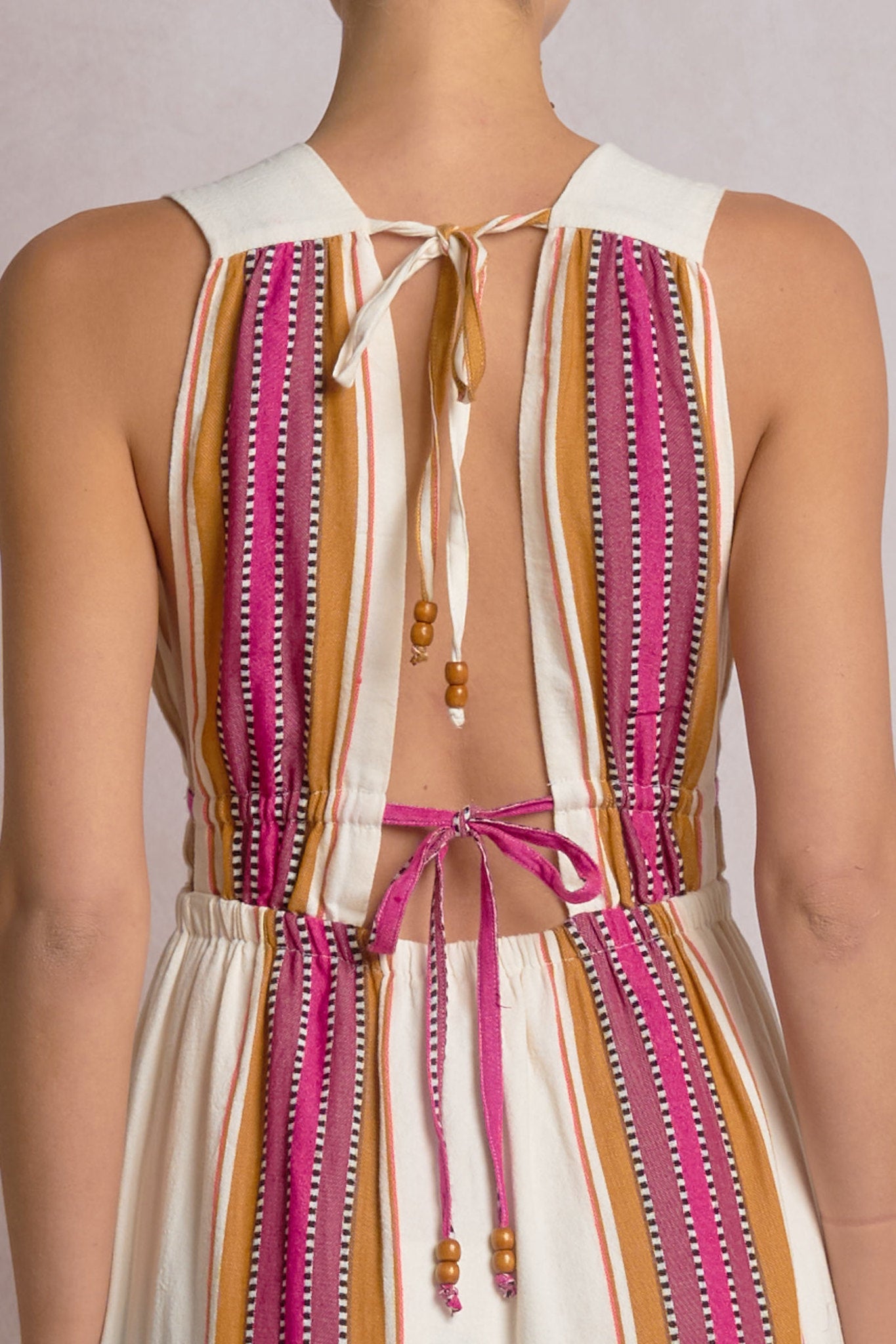 Breezy, feminine, and effortlessly eye-catching, the Birdie Maxi Dress is made for sun-drenched days and warm summer nights. Featuring a vibrant stripe print in soft natural pink hues, this flowy maxi showcases a plunging halter neckline and delicate tied-back details that create an elegant yet relaxed silhouette. The airy skirt moves beautifully with every step, making it the perfect piece for vacations, seaside lunches, or easy everyday wear. Lightweight and comfortable, it’s a go-to dress that feels just as good as it looks.