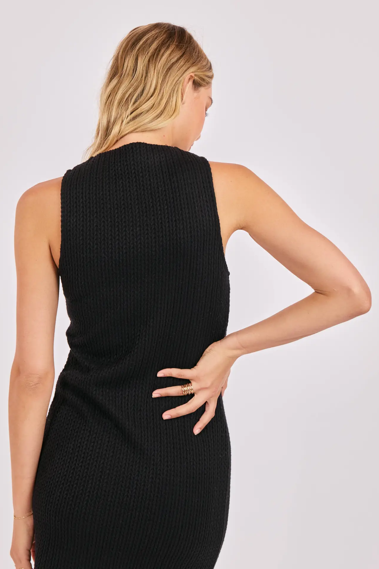 Polished yet effortless, the Maris Raised Knit Sleeveless Mini Dress in black is a timeless staple with elevated texture. Designed in a raised knit fabric, this mini brings subtle dimension and a refined feel to an easy, flattering silhouette. The sleeveless cut keeps it modern and versatile, perfect for warm days, layered looks, or evenings out. Style it with sneakers for a laid-back daytime vibe or dress it up with heels and statement accessories. Finished in a classic black hue, this Sadie & Sage favorite pairs seamlessly with everything in your wardrobe.