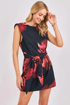 Elevate your style with the Opulent Shadows Strong Shoulder Mini Dress from Sadie and Sage. Designed to make a statement, this mini dress features bold power shoulder styling and a sleek crew neckline, balancing structure with modern sophistication. Its sleeveless silhouette and slightly stretchy woven fabric ensure a comfortable, flattering fit, while the keyhole back with single-button closure adds a touch of subtle allure.