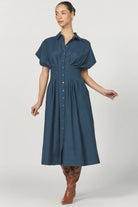 Plisse Denim Button Up Dress