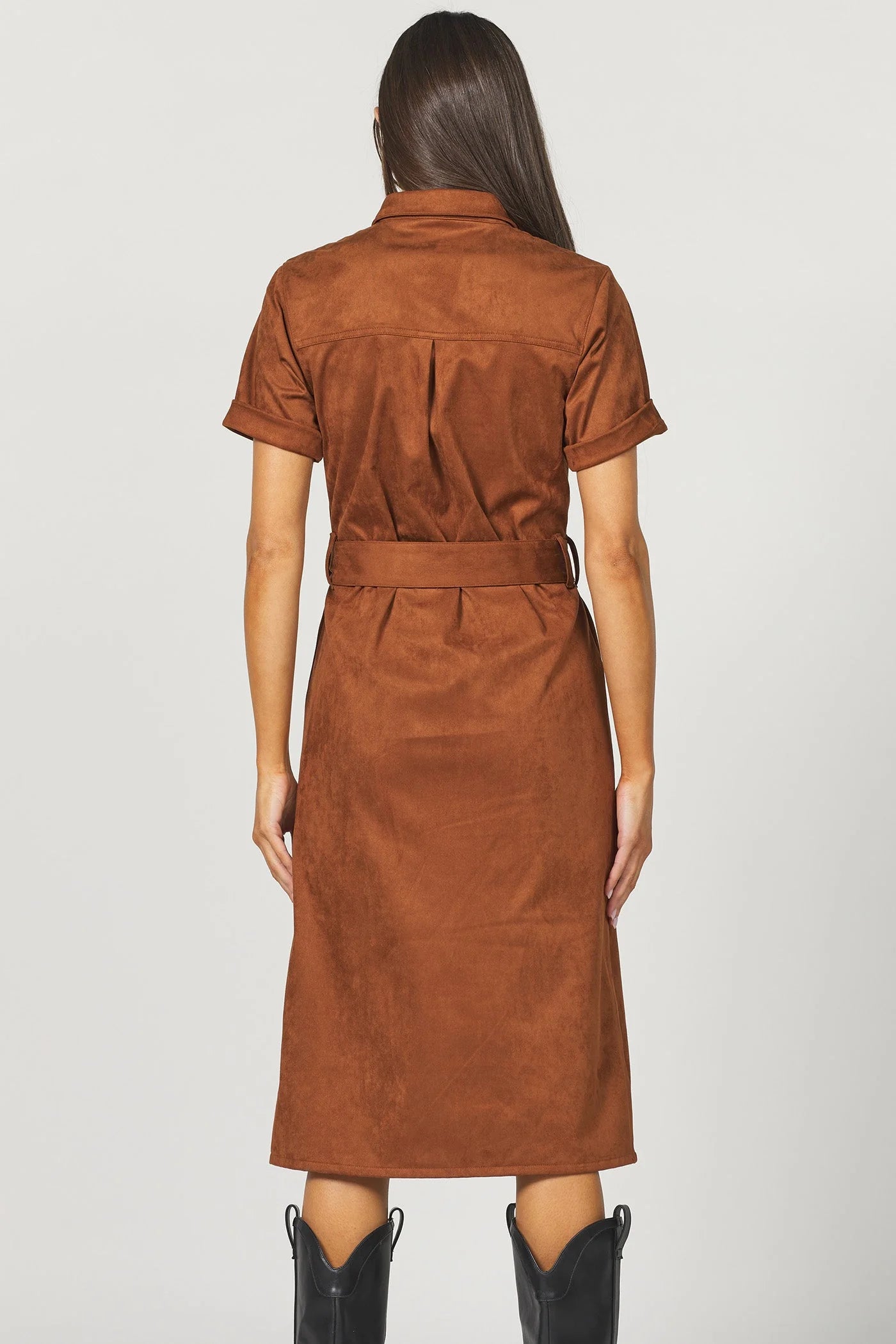 The self belt accentuates your waist, enhancing your natural shape, while the soft, stretchable suede fabric provides comfortable fit.