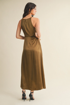 Slip into effortless elegance with the Serena Satin Maxi Dress. Crafted in a fluid satin finish, this dress drapes beautifully with soft ruching along the bodice that flatters your natural shape. The high neckline and sleek silhouette add a refined touch, while the flowy maxi length brings graceful movement to every step. Perfect for weddings, evening events, or any moment that calls for understated sophistication.