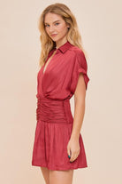 Experience effortless style with our Shirring Wrap Dress. Designed for versatility, this dress features a flattering wrap silhouette and beautiful shirred detailing. Perfect for any occasion, its comfortable fabric ensures all-day wear. Pair it with heels or sandals for a chic look every time.