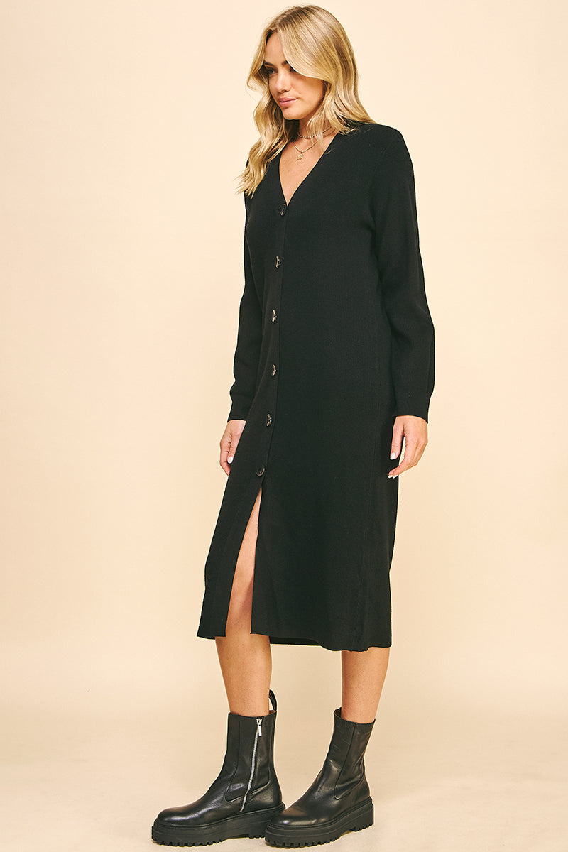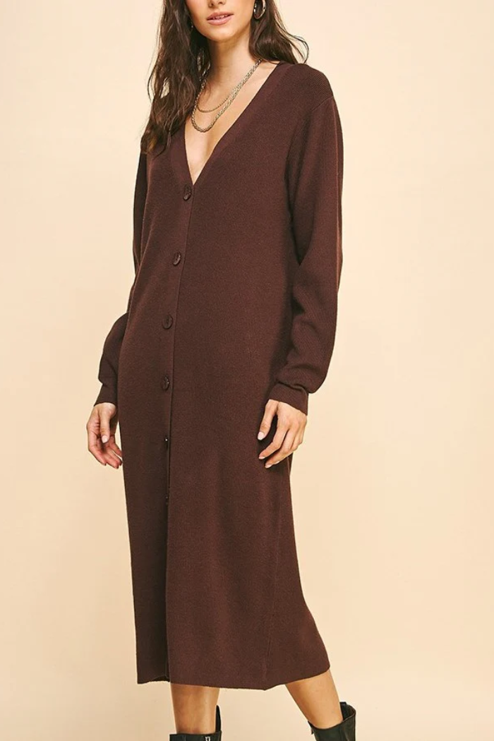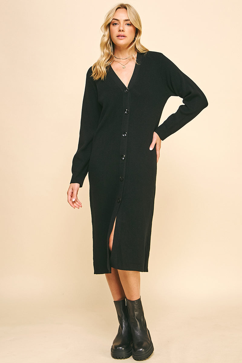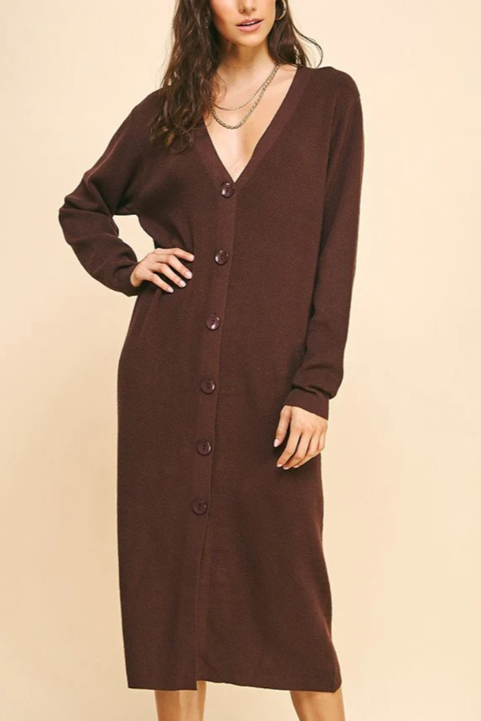 Cozy up in effortless elegance with our Sweater Button-Down Dress — the perfect blend of warmth, style, and sophistication. Crafted from a luxuriously soft sweater knit, this dress wraps you in comfort while keeping your look chic and polished.