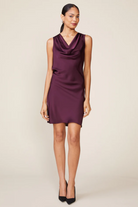 Make a statement in our sunset satin slip dress. The simply irresistible, expertly crafted cowl neck is detailed enough for this stunning sleeveless mini dress to be a standout.