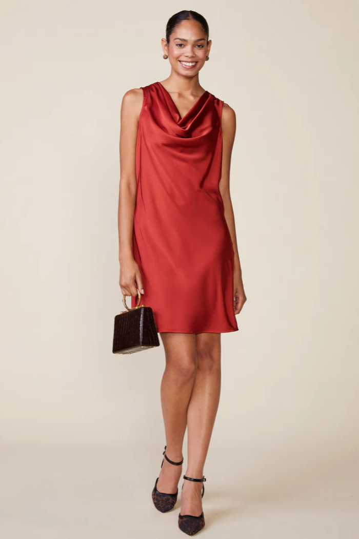 Taylor Satin Cowl Neck Dress | Baked Clay