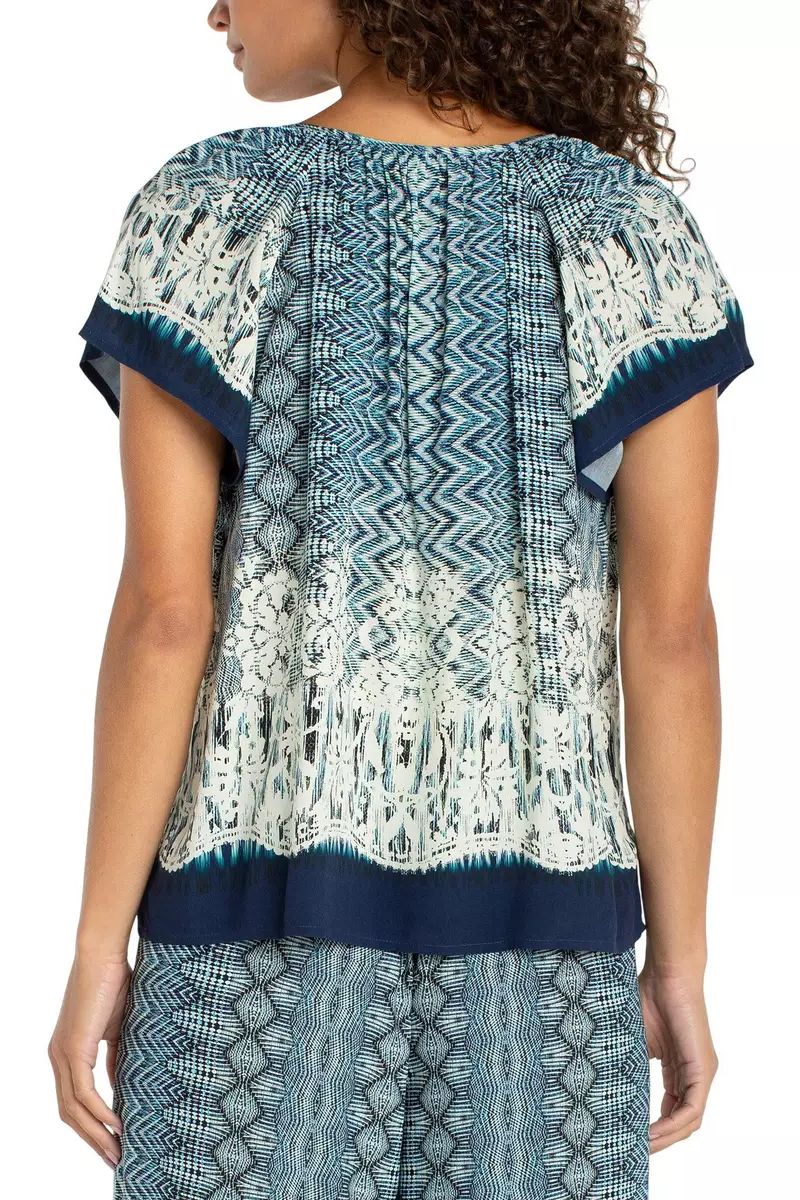 Easy, breezy, and effortlessly chic—the Alexandria Front Tie Top brings relaxed polish to your everyday wardrobe. Designed in Liverpool’s signature Nomad Ikat print, this lightweight woven top features a flattering front tie detail that adds shape and a modern touch. The short sleeve silhouette keeps it cool and comfortable, making it a go-to piece for warm days, travel outfits, or laid-back yet stylish moments.