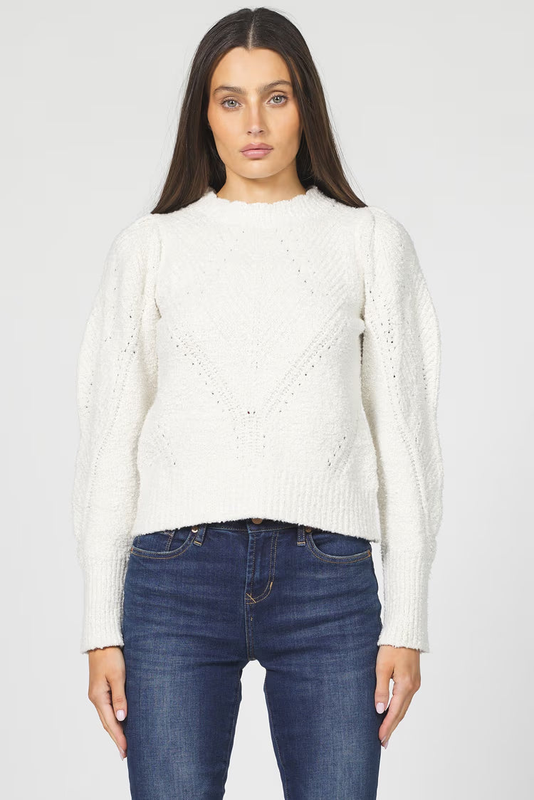 Aliza with puff sleeve is style and comfort with our long sleeve drop needle design sweater.
