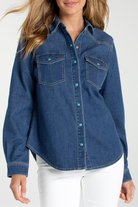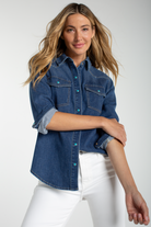 A modern take on a western classic, the Audria Western Slim Shirt blends authentic heritage details with a sleek, contemporary silhouette. Designed in super-soft denim, this shirt offers a flattering slim fit that feels polished yet effortless. The rich Wilder wash adds depth and versatility, while turquoise button accents bring a subtle pop of character inspired by traditional western style.