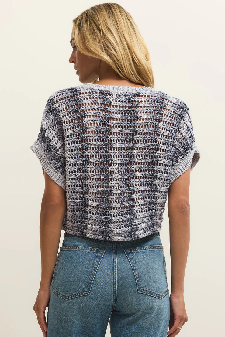 Soft, airy, and full of texture, this crochet stripe top brings a cool, laid-back feel to any look. The open weave and cropped silhouette make it perfect for pairing with high-rise denim or layering over a tank.
