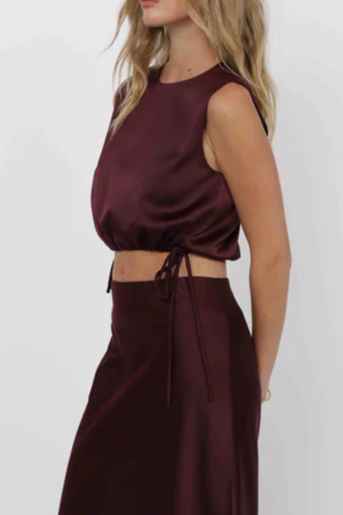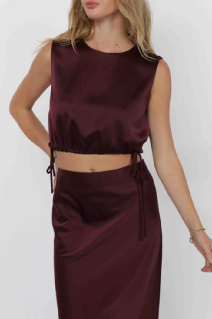 Step into confidence with the Deep Trance Cropped Tank in rich wine. Designed with sleek side ties and a flattering sleeveless cut, this top blends modern allure with effortless sophistication. Perfect for evenings out or elevated daytime looks, it’s the statement piece that turns any outfit into a moment.