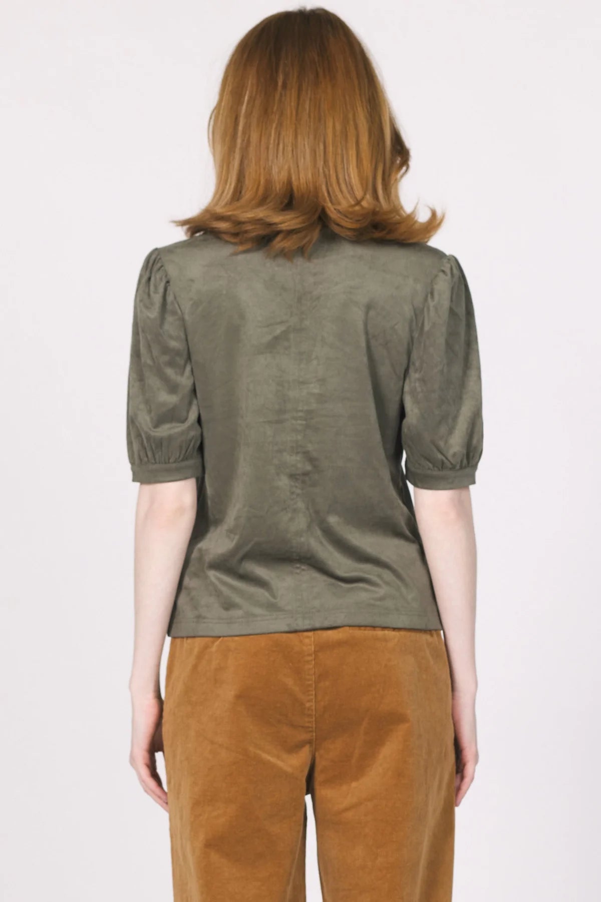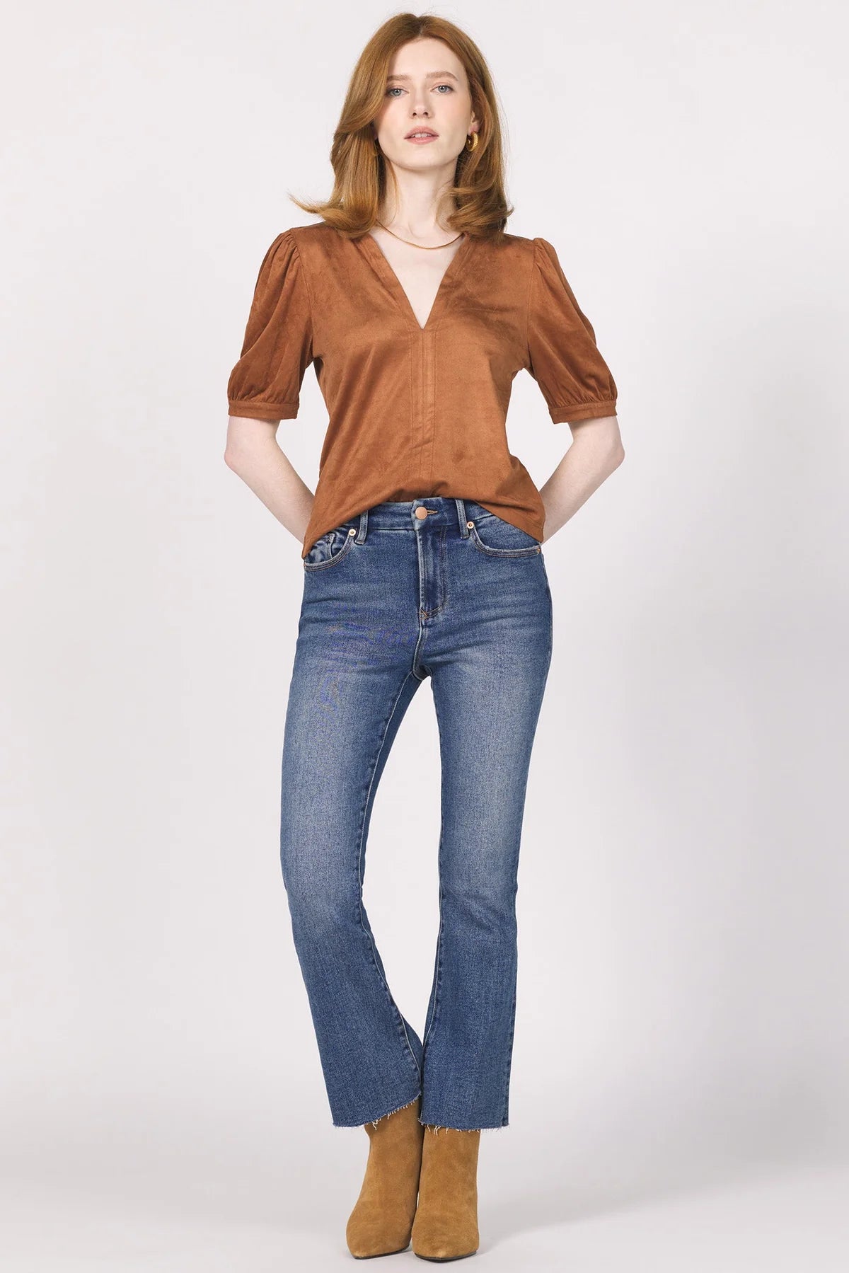 Kalia v-neck puff sleeve top in suede combines elegance and modernity with its sleek design. Crafted to offer both comfort and style, this top is perfect for any occasion. Classic fitting pairs beautifully with everything from jeans to skirts, a reliable staple season to season.
