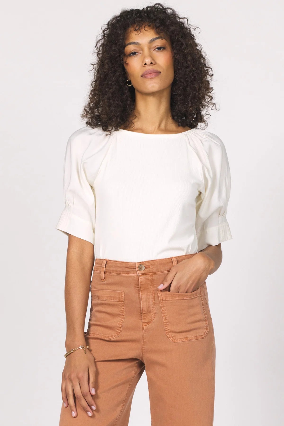 Kera crew neck in mix media puff sleeve top, featuring classic mix of rayon, polyester and spandex. It's perfect for dressing up or down for all-day comfort and style. The classic fit allows for easy movement is a reliable choice for any occasion.