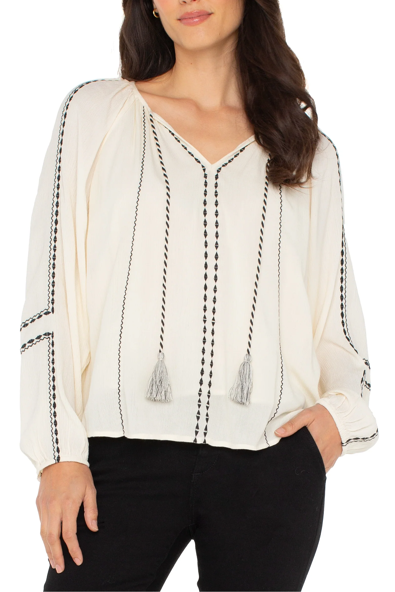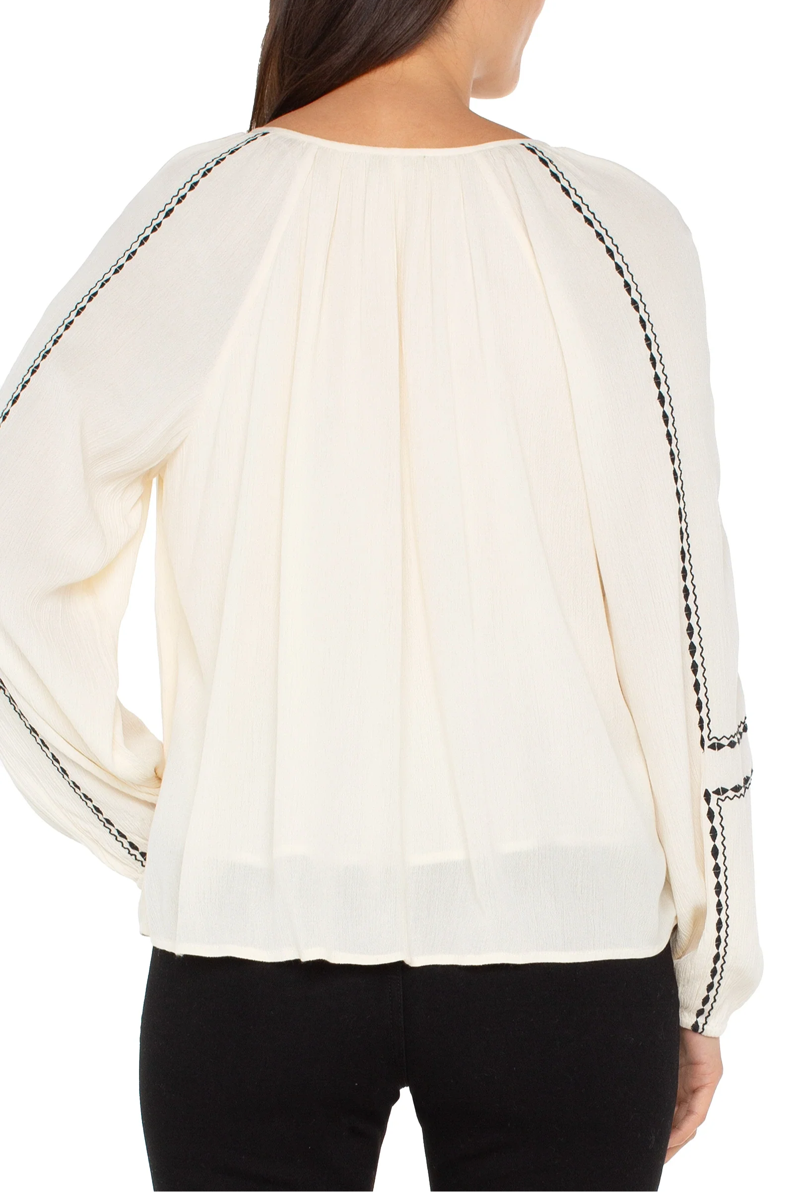 Laine Long Sleeve Woven Raglan Blouse With Embroidery