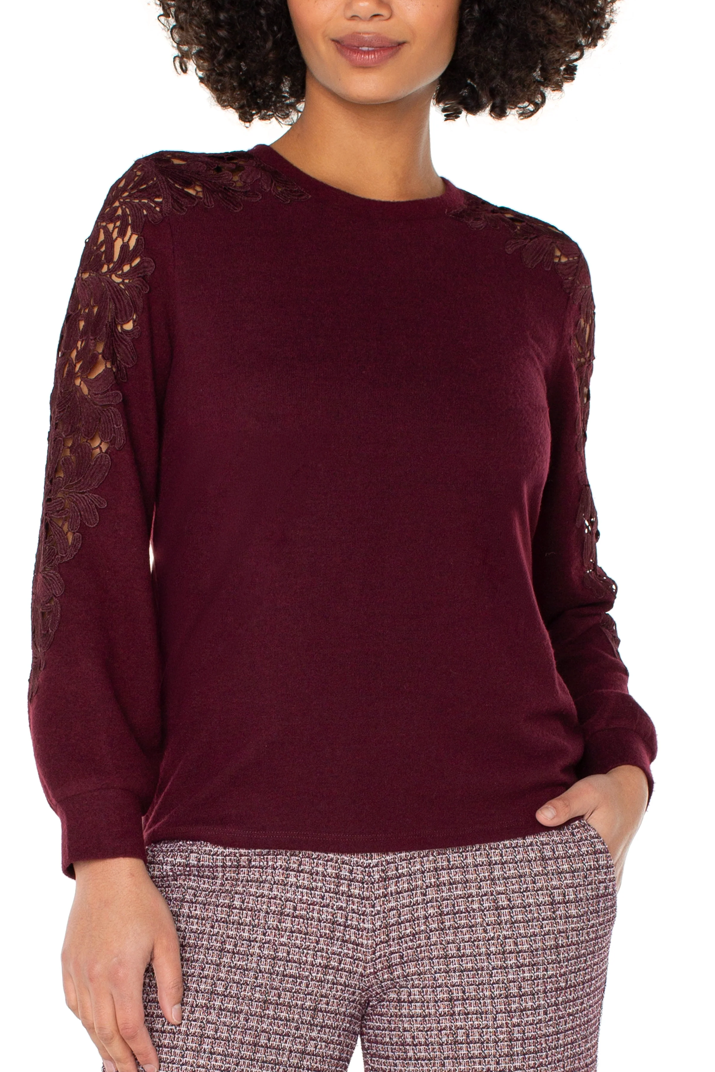 Long Sleeve Crew Neck Lace Inset Knit Top