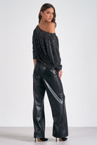 Dazzle the night away with this stunning long-sleeve top designed for effortless glam. Crafted with shimmering sequins throughout, this piece offers a flattering drape and a subtle hint of edge. The off-shoulder neckline adds a sultry, sophisticated touch, balancing the sparkle with an alluring silhouette. The relaxed fit and batwing sleeves make it comfortable yet chic, perfect for making a statement at parties, dinners, or nights out.