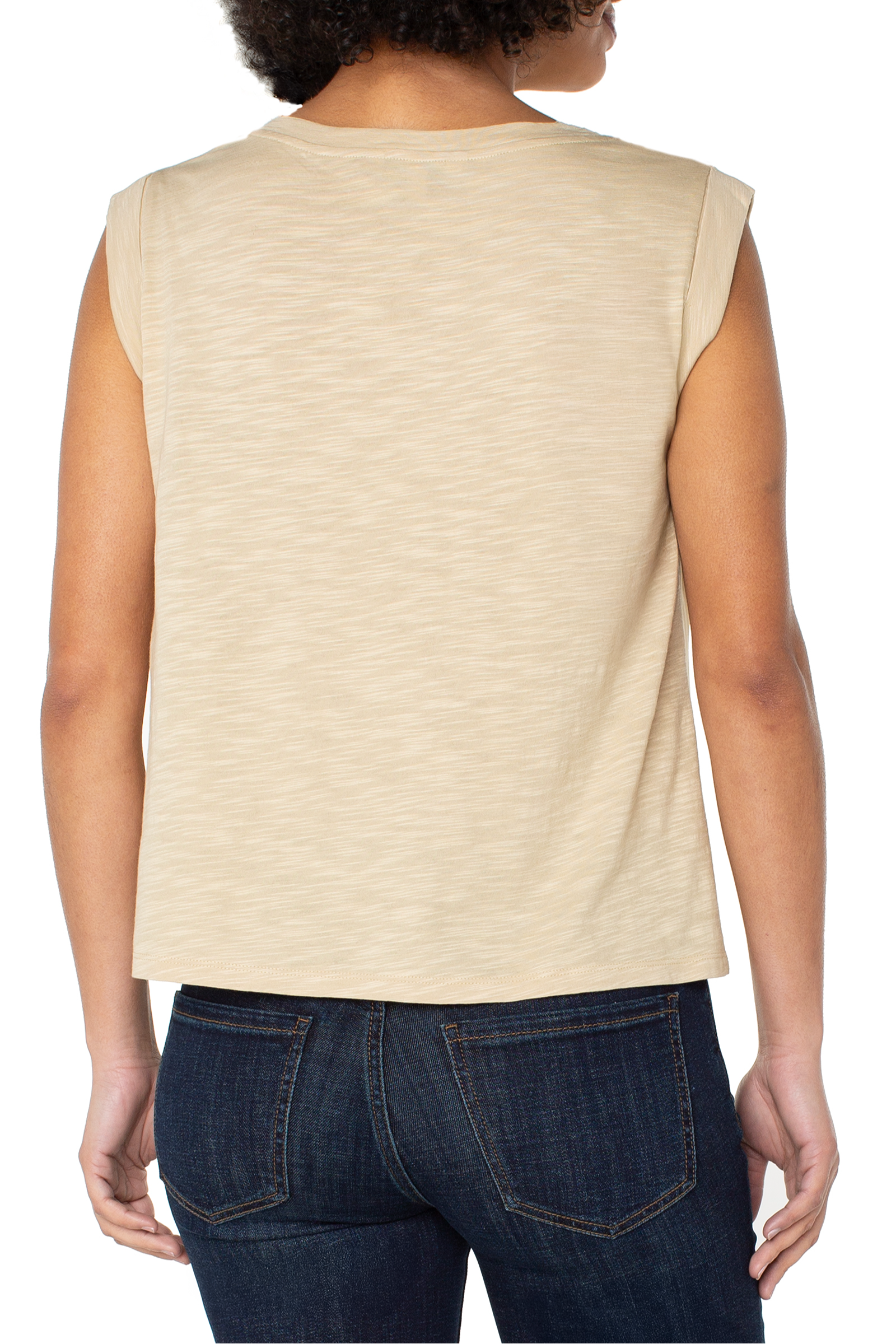 The Melina Sleeveless Woven Knit Top by Liverpool Los Angeles is an elevated essential designed for effortless everyday style. Featuring a clean, sleeveless silhouette and a classic crew neckline, this top drapes beautifully for a polished yet relaxed look. Crafted in a smooth woven-knit fabric, it offers the perfect balance of structure and comfort. The easy, boxy fit makes it versatile for warm days worn on its own or layered under a blazer or jacket for a refined office-ready outfit.