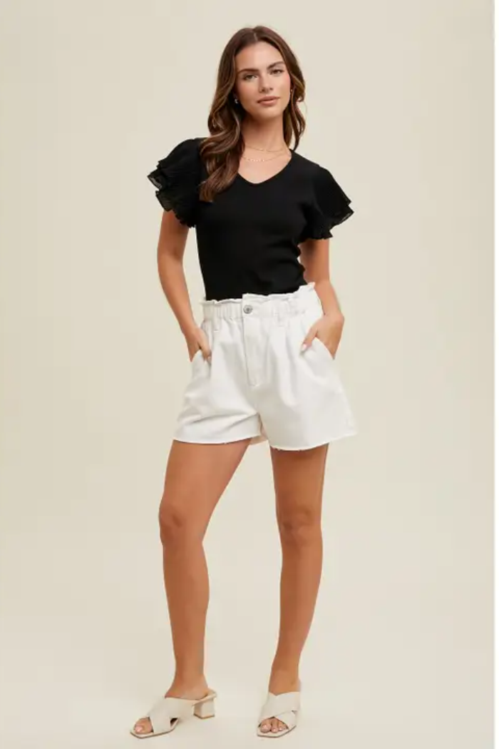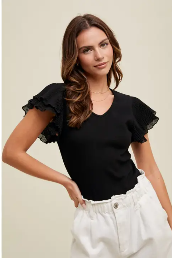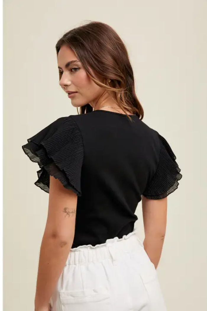The Raven Flutter Sleeve Thong Bodysuit blends feminine detail with everyday ease, creating a piece that feels as good as it looks. Delicate pleated flutter sleeves, crafted from 100% polyester, bring soft movement and an elegant touch to the silhouette. The ribbed body, made from a soft, breathable blend of 94% cotton and 6% spandex, hugs in all the right places, offering comfortable stretch and a naturally flattering fit.