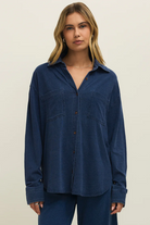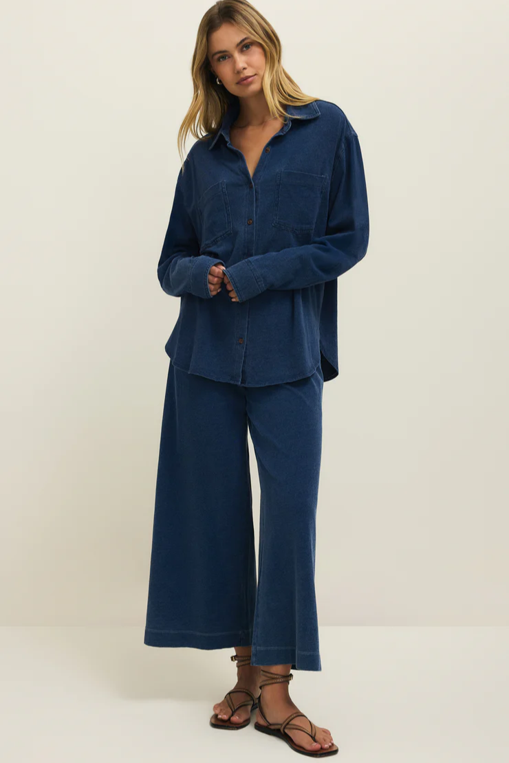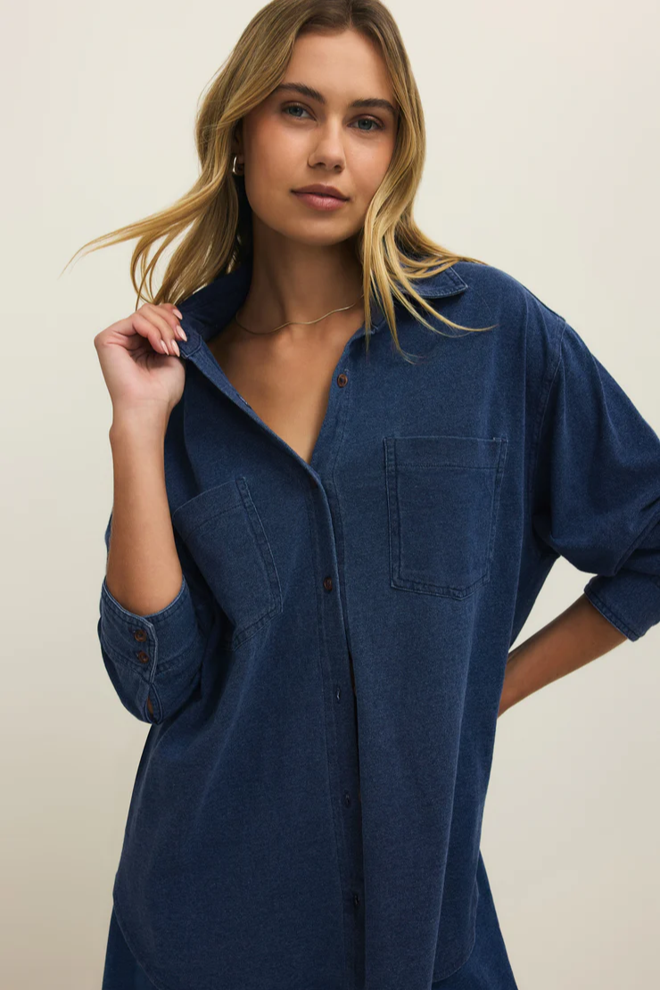 Reese Jersey Denim Button Up