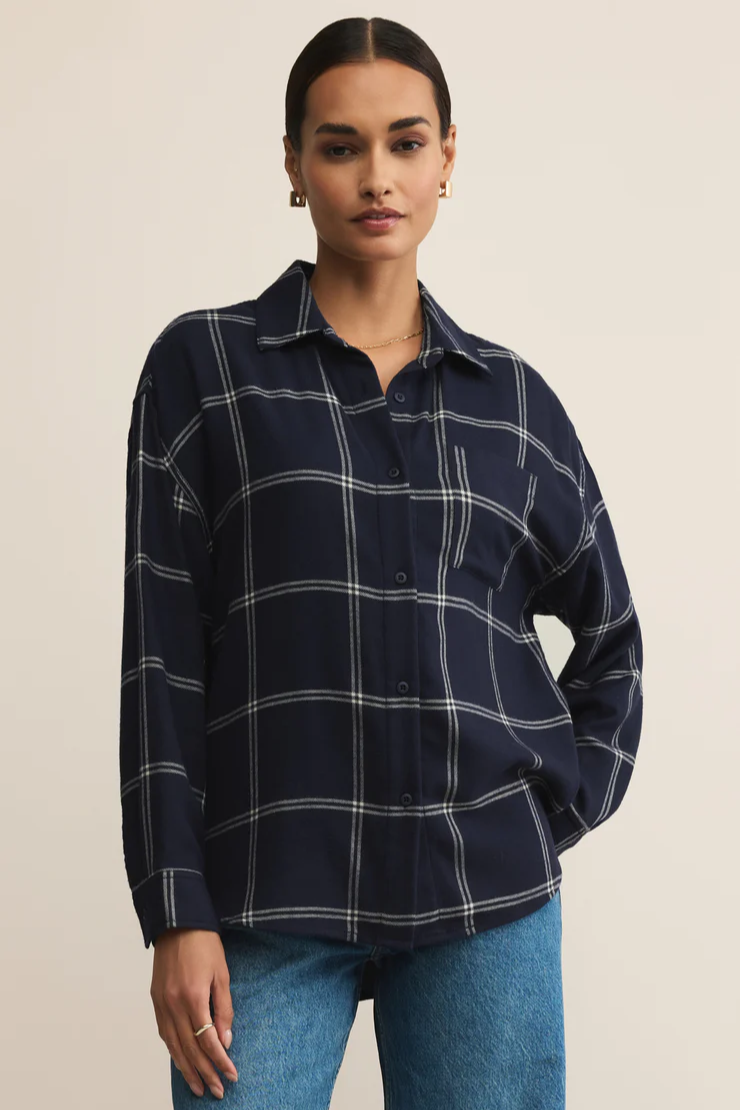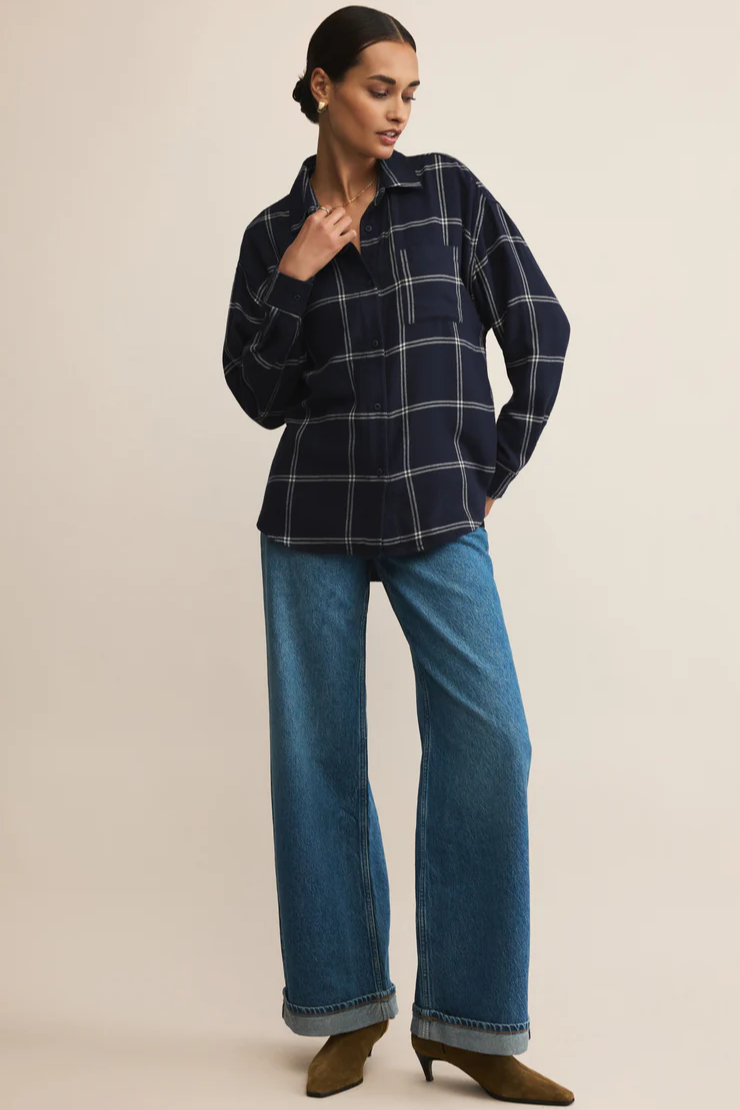 Embrace casual comfort with our plaid button-front top, perfect for layering open over a tee or wearing buttoned up. Made from buttery soft flannel fabric, this relaxed piece feels like a well-loved favorite from the first wear.