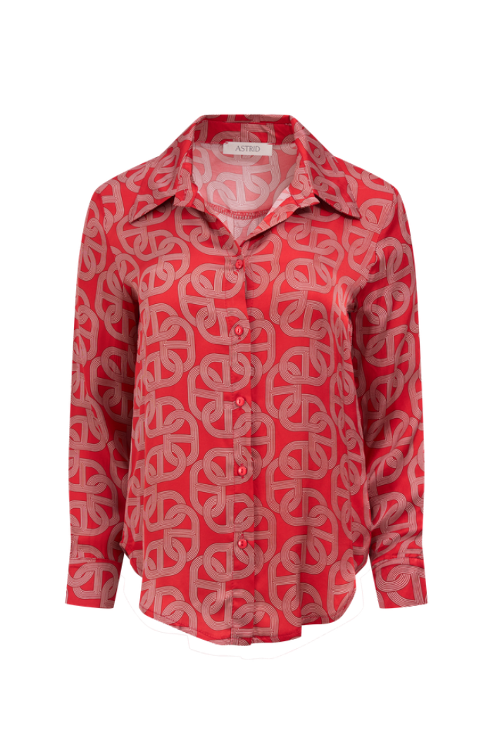 Bold, modern, and effortlessly chic, the Sacha Shirt brings a fresh statement to your everyday wardrobe. Designed in a vibrant red hue with an all-over interlocking geometric print, this shirt blends contemporary style with a timeless silhouette. The relaxed button-down fit and classic collar create an easy, polished look that moves seamlessly from workdays to weekends.