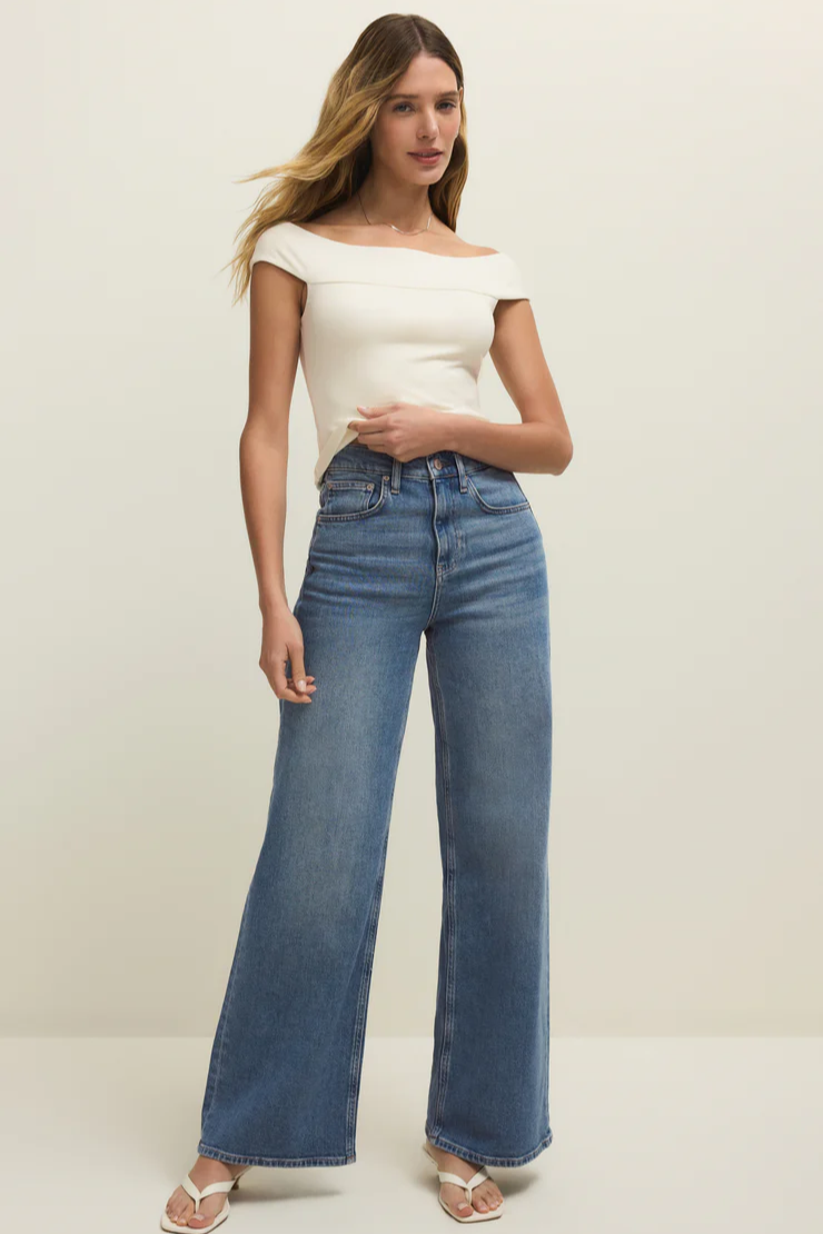 Soft, smooth, and body-hugging, this off-shoulder top flatters with just the right amount of stretch. Made from our signature Second Skin rib fabric, it’s the perfect piece to dress up or pair with denim for an easy casual look.