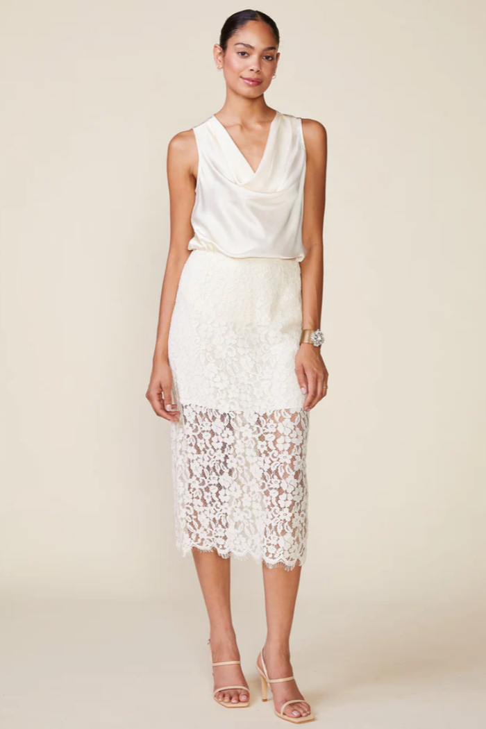 A classic cowl neck shell perfect to wear alone or layered. A beautiful satin piece to wear on repeat. Pair this top with our Lace Midi Skirt or Satin Godet Pants for a top to bottom ensemble.