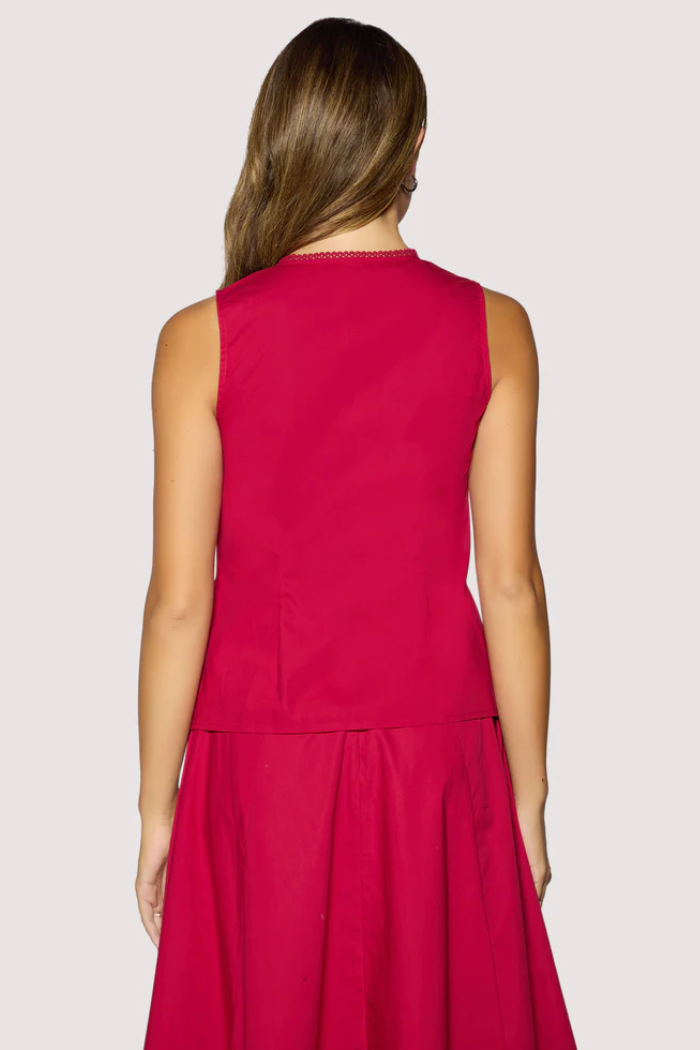 The Vino Kiss Vest Top epitomizes modern minimalism with its clean sleeveless silhouette and thoughtfully placed tie details that add an unexpected touch of intrigue. This versatile piece transitions seamlessly from boardroom to brunch, offering a refined canvas for layering or standing boldly on its own. The strategic tie accents create visual interest while maintaining an air of understated elegance, making it an essential addition to any discerning wardrobe. Elevate your everyday essentials with a top that proves sophistication doesn't require complexity.