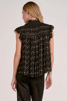 The Yareli Top in Black Geo Print brings a bold, modern touch to your everyday style. Designed with a striking black-and-white geometric pattern, a flattering V-neck with tie closure, and soft flutter sleeves, this relaxed-fit top pairs effortlessly with denim or tailored pants for an easy statement look. Runs true to size.