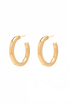 These 40mm Jane Hoop are a polished gold-tone pair that lift everyday looks with a clean, modern silhouette. The hoops feature a slightly rounded, chunky profile and secure post-back closures for comfortable wear. HJANE designed them as a versatile staple that pairs equally well with casual and dressed-up outfits.
