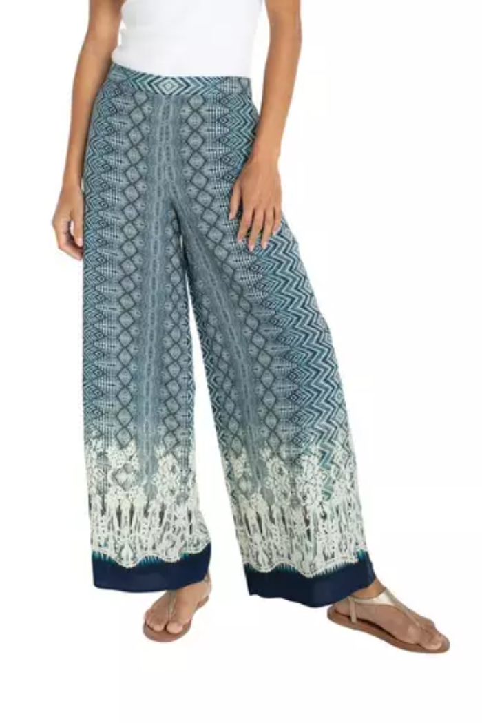 Make a statement with ease in the Abigail Pull-On Palazzo Pant, designed in Liverpool’s eye-catching Nomad Ikat print. Crafted from lightweight woven fabric, these flowy wide-leg pants deliver effortless movement and all-day comfort. The pull-on design with an elasticized waistband offers a flattering, fuss-free fit, making them a stylish choice for everything from relaxed weekends to elevated evenings out. Bold yet versatile, they’re the perfect piece to refresh your wardrobe with modern flair.