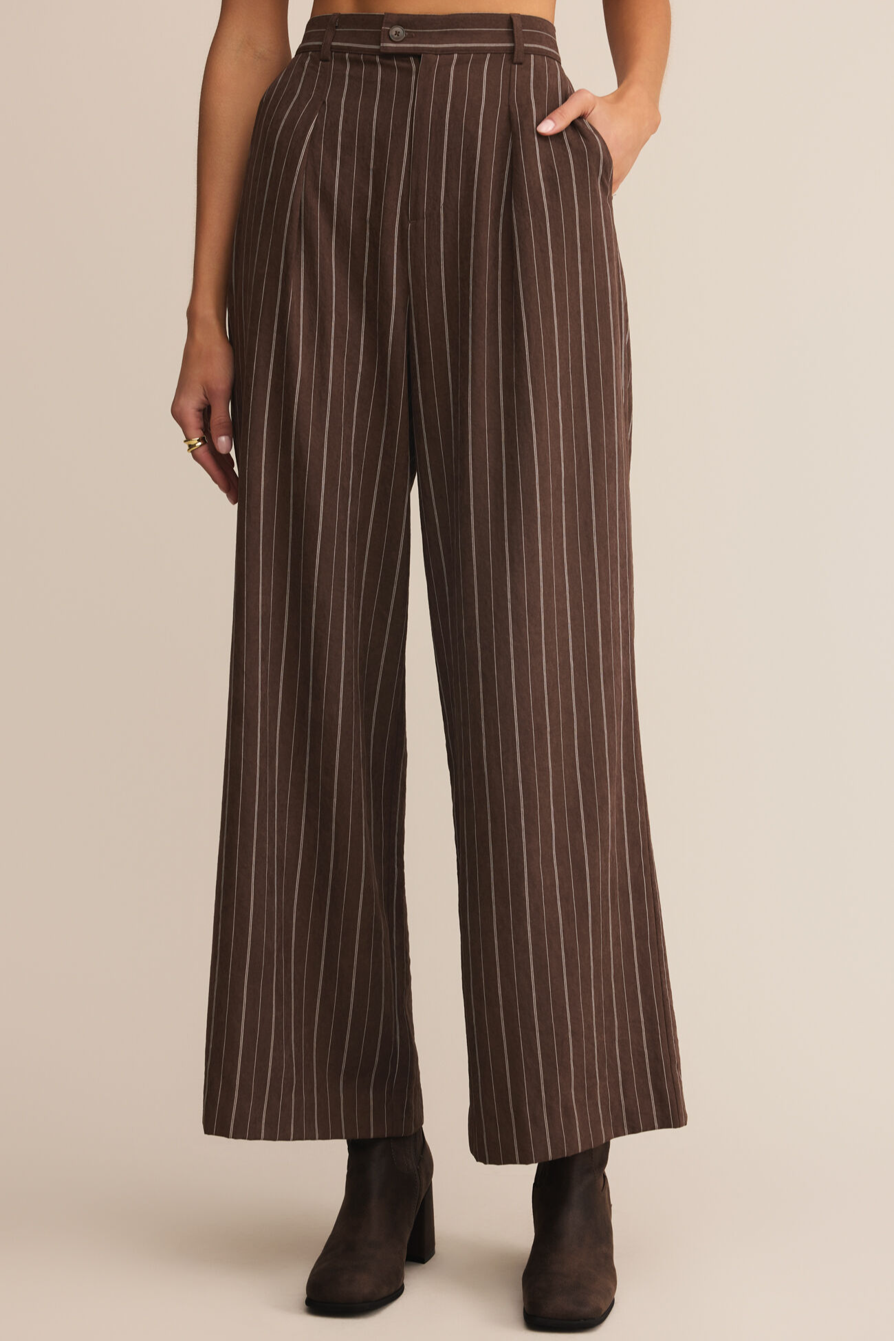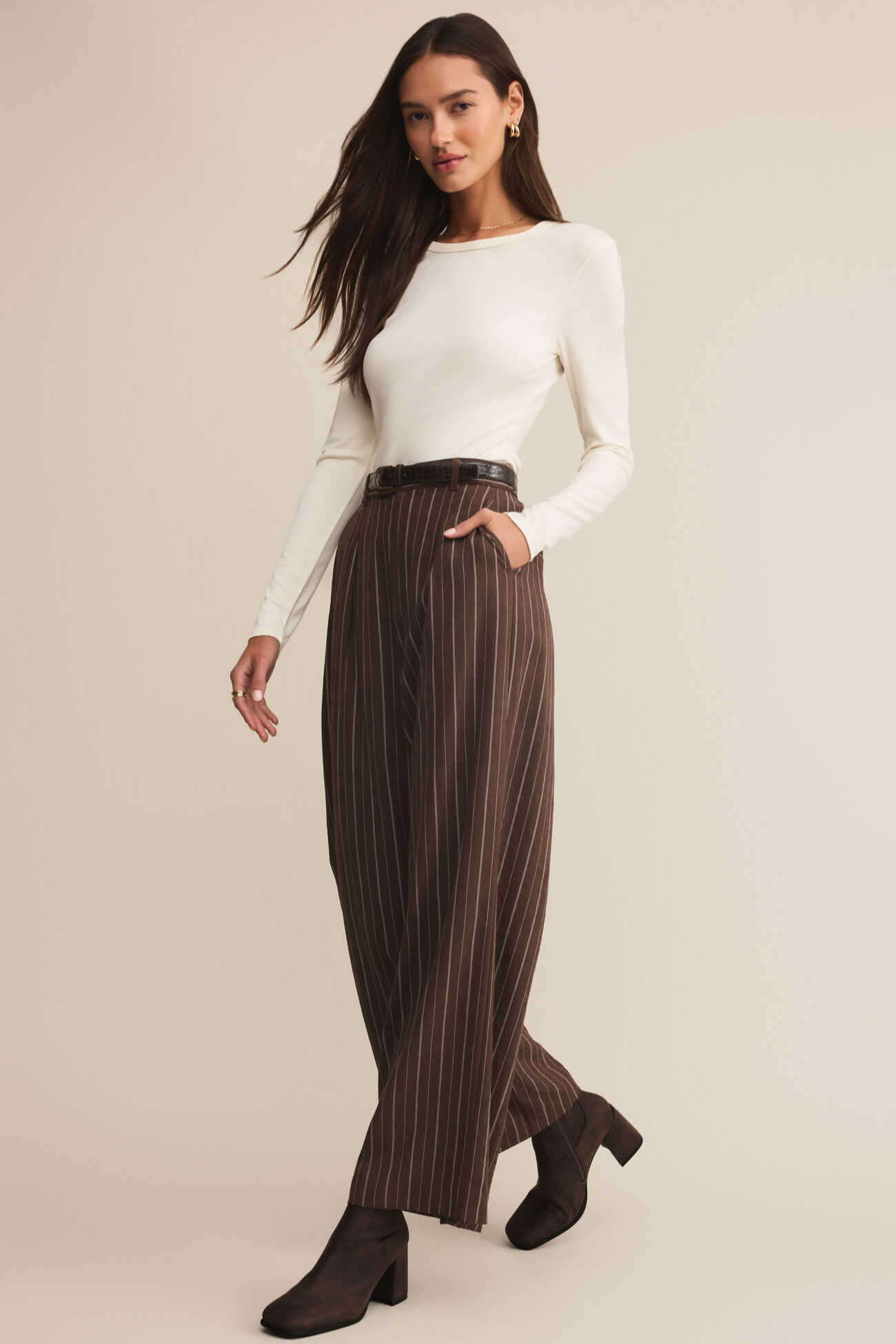 Meet the Alma Pinstripe Wide Leg Pant, a timeless, tailored piece designed to bring effortless sophistication to your everyday lineup. Crafted from a drapey pinstripe fabric with a soft, heavy-washed finish, these pants deliver that perfect blend of structure and movement. The high-rise waist offers a flattering, elongated silhouette, while the wide-leg cut adds an elevated, modern feel. Whether you're dressing for the office, brunch, or a polished night out, the Alma Pant brings quiet luxury to every look.