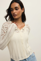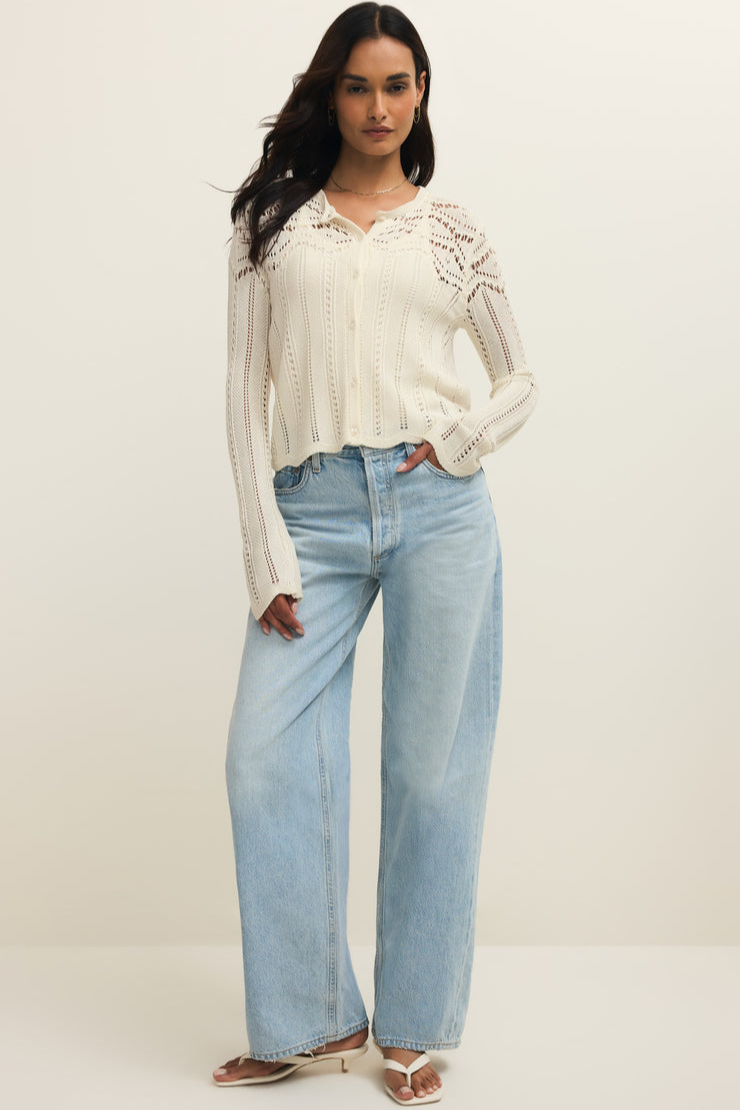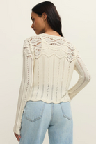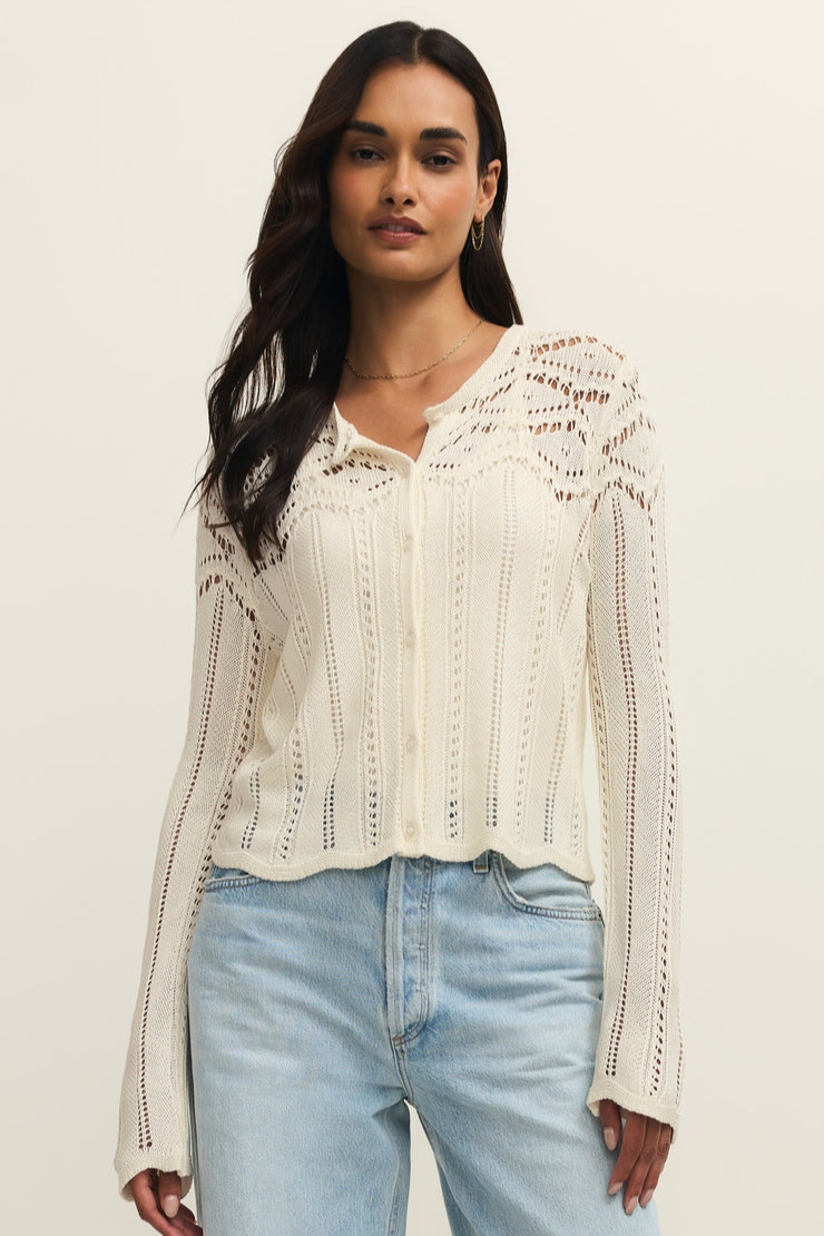 Its lightweight feel and button front make this crewneck cardigan easy to wear and layer. The unique crochet all-over detail updates your everyday top and jeans uniform.