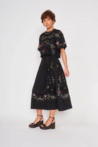 Elevate your wardrobe with the Arcadian Embroidered Skirt in Black from dRA. This skirt effortlessly balances playful charm with sophisticated elegance, featuring delicate embroidery that adds a subtle, artistic touch. Its lightweight, flowing silhouette moves gracefully with every step, making it a versatile piece for both casual days and polished evenings. Pair it with a crisp blouse or a simple tee for an effortlessly chic look.
