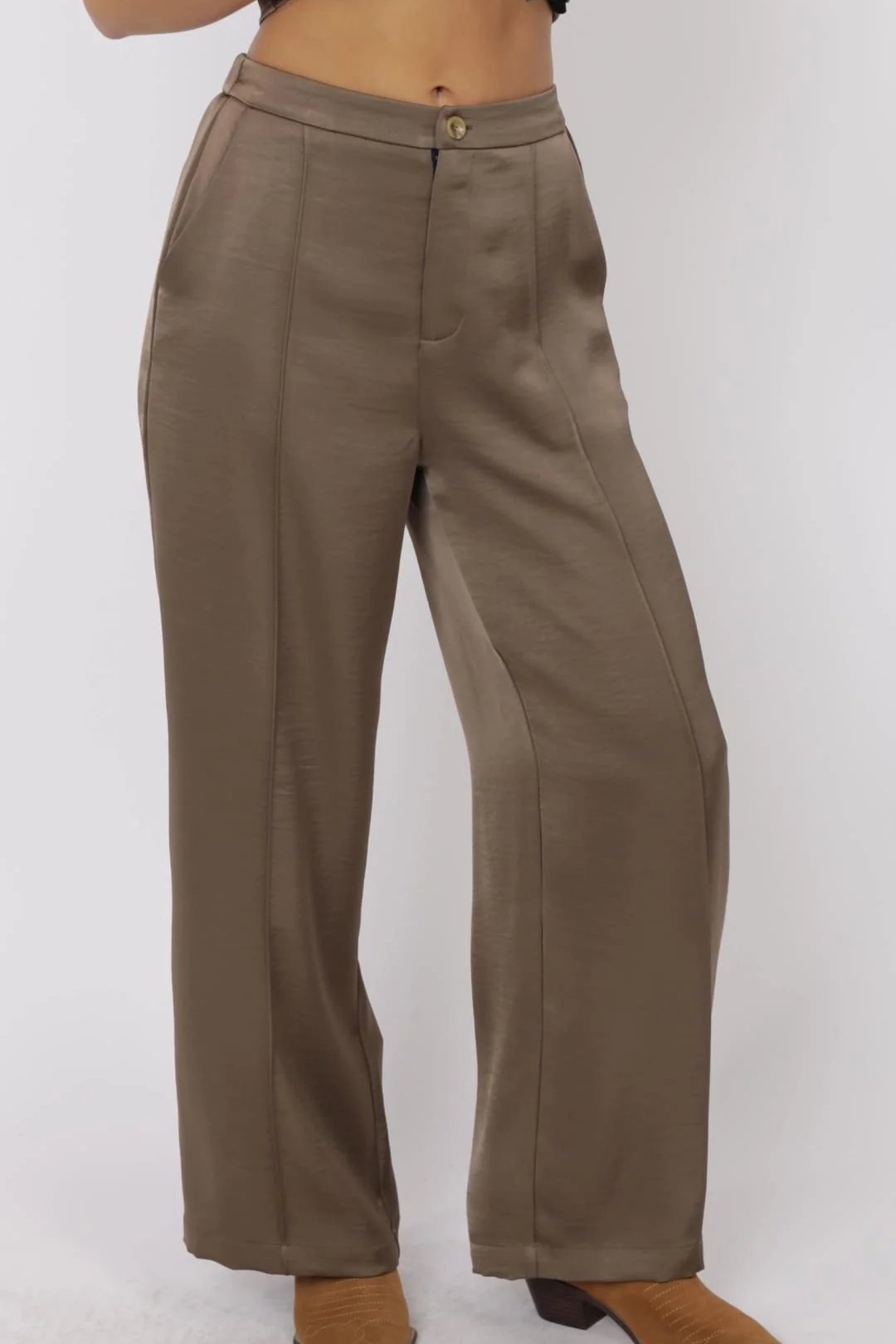 Step into effortless sophistication with the Arizona Sky Pant. Crafted from smooth, silky taupe satin, these trousers bring a touch of luxury to any occasion. Designed for both comfort and style, they feature a fluid drape that flatters your silhouette, perfect for pairing with a tailored blouse for the office or a sleek cami for an evening out. Versatile, elegant, and endlessly chic, these pants are your new go-to for elevated everyday wear.