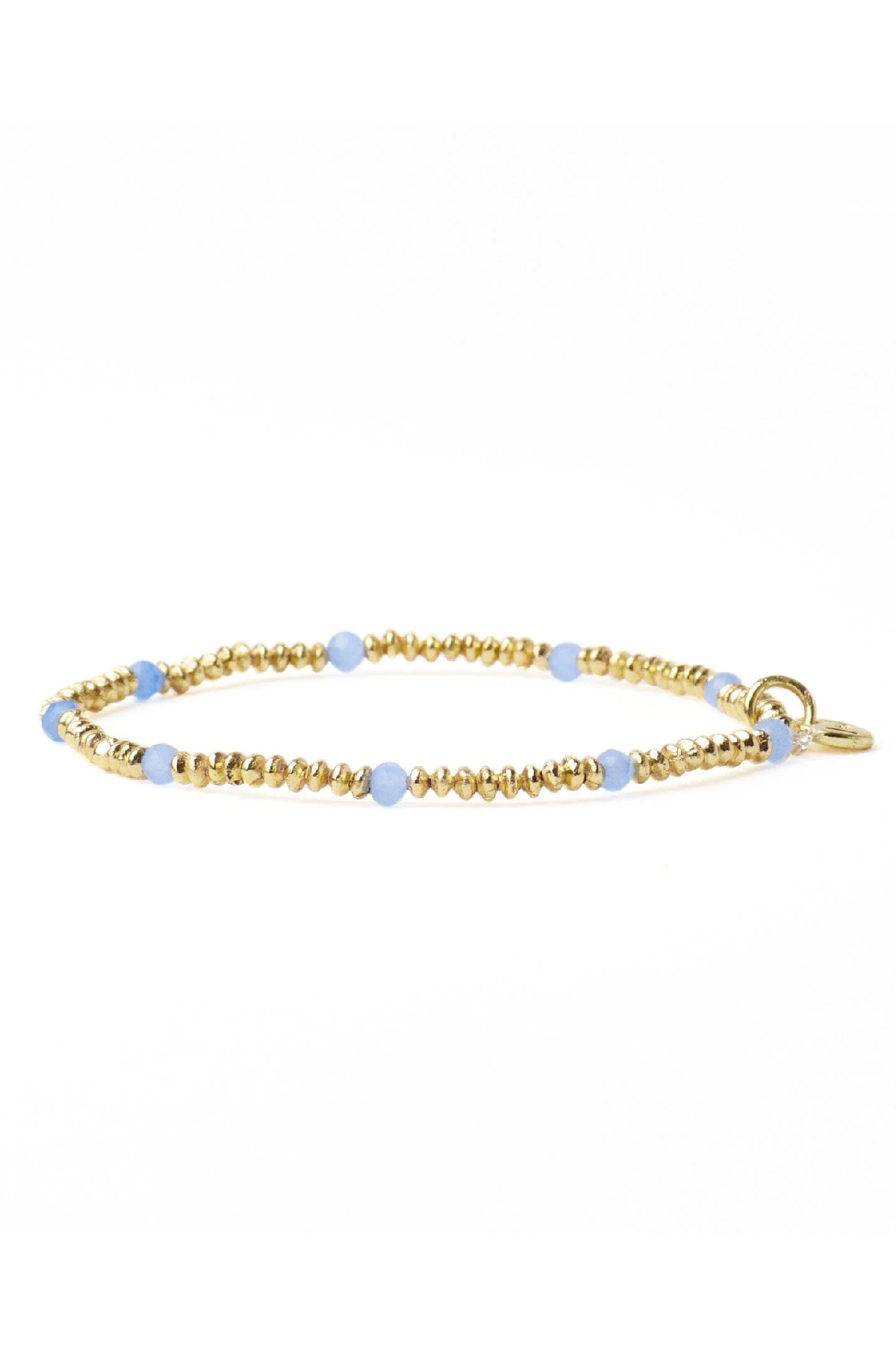Ashley Small Brass + Crystal Stretch Bracelet Blue + Gold