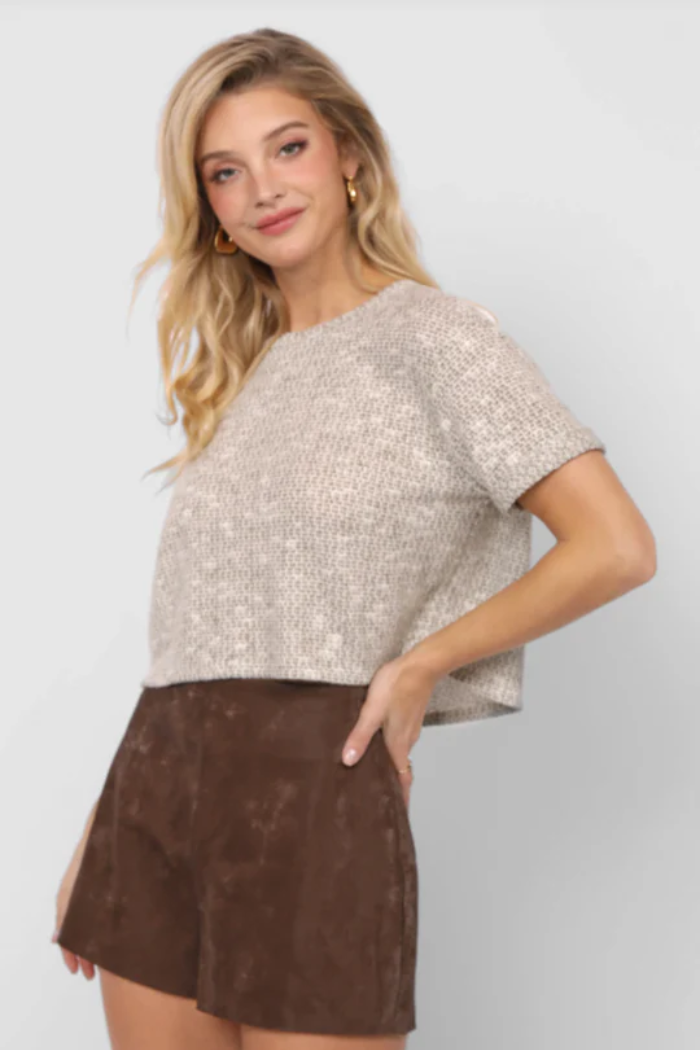 Meet your new everyday essentia, the Billie Short Sleeve Knit Top. Made from an ultra-soft, breathable knit, it’s designed to keep you comfy from morning coffee runs to late-night lounging. Its timeless silhouette makes styling effortless, layer it under a blazer for a polished look or wear it solo for laid-back charm. Versatile, flattering, and irresistibly cozy, the Billie is the kind of top you’ll reach for again and again.