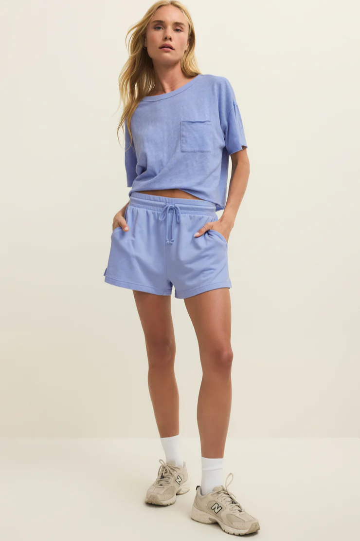 These high rise shorts feature a drawcord waistband, side seam pockets, and a baby french terry fabric. Pair with the World Tour Rib Tank or Weekender V Neck.