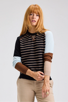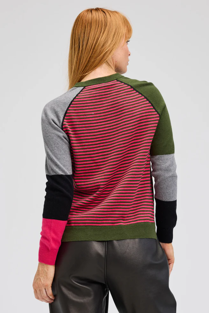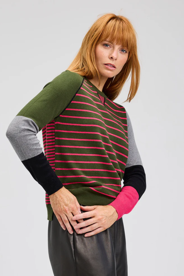 Fall in love with the refined yet playful charm of the Breton Sweater by Zaket & Plover. This cozy knit showcases a sophisticated mix of patterns, featuring fine stripes along the front for a classic touch and bold color-blocked sleeves that add modern contrast. Perfect for effortlessly elevating your everyday look with a hint of artistic flair.