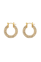 Make a statement with the Cara Huggie Hoops Large from Hjane Jewels. Designed in a bold yet refined silhouette, these hoops feature a full pavé of sparkling cubic zirconia stones across the front, delivering eye-catching brilliance with every turn. Crafted from durable materials and finished in luxurious 18K triple gold plating, they’re made to shine day or night.