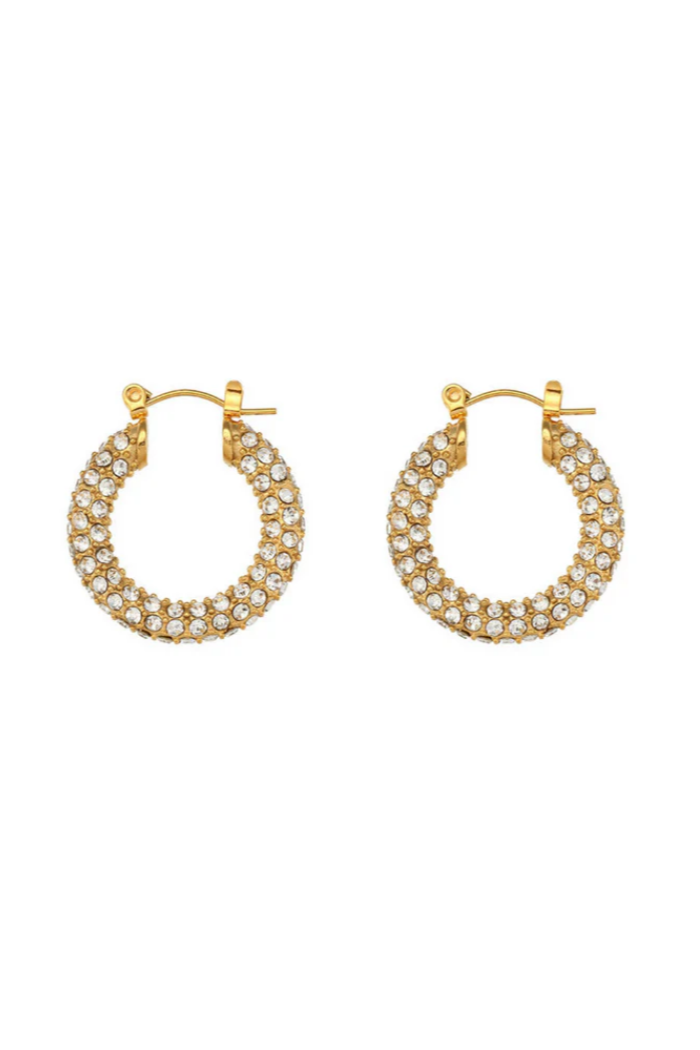 Finished with a secure hinged-back closure for all-day comfort, these hoops are water-resistant, hypoallergenic, and free from lead and nickel, perfect for everyday wear with a touch of glamour.