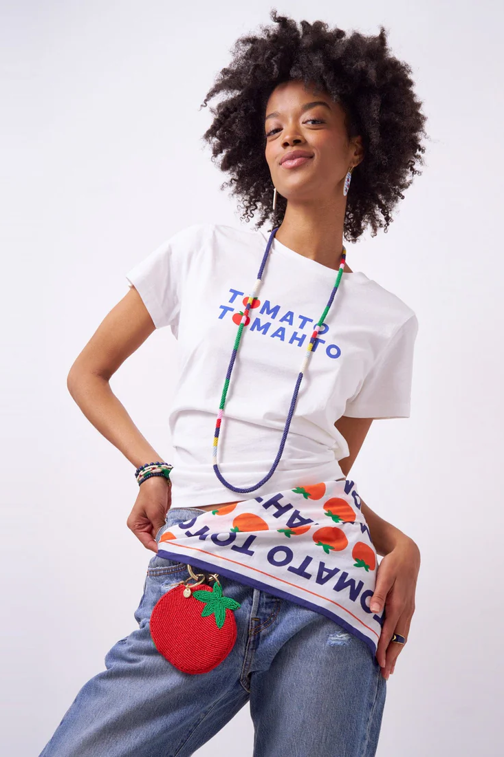 • Whimsical tomato-themed print with a graphic twist