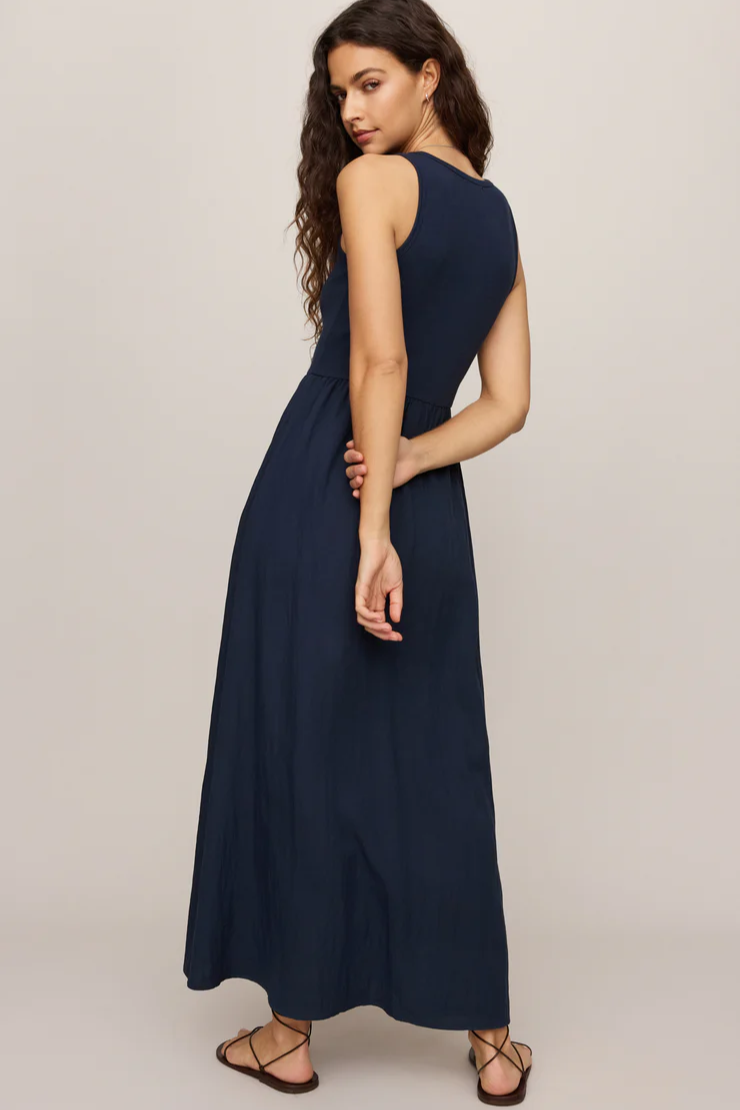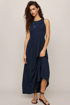 The soft ribbed bodice flatters with a fitted shape, while the textured rayon skirt flows down to hit above your ankles. Finished with a high neckline, sleeveless silhouette, and hidden pockets, it’s an elevated everyday dress you can wear all season.