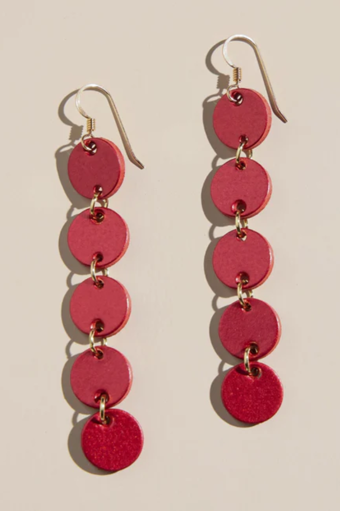 The Crimson Shimmer Sylvie is the life of the party with a shimmering sequin-inspired silhouette. The subtle sparkle of the tiered leather shines in the light and adds the perfect touch to any festive ensemble.