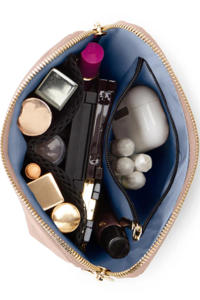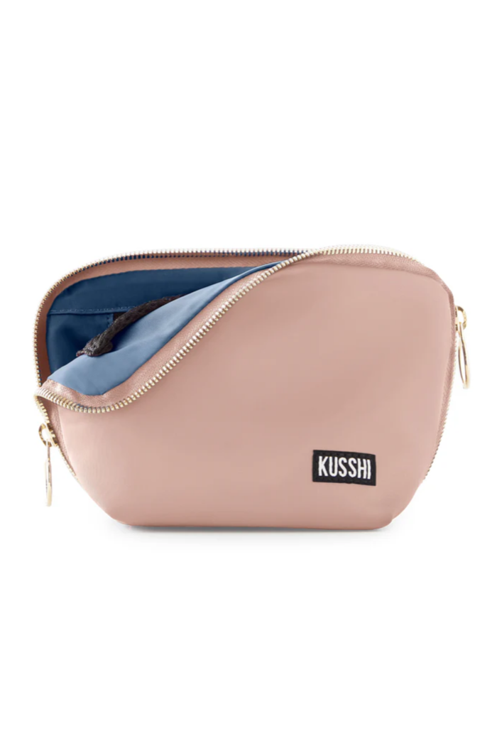 KUSSHI Everyday Makeup Bag (small) Blush with Cool Grey Interior