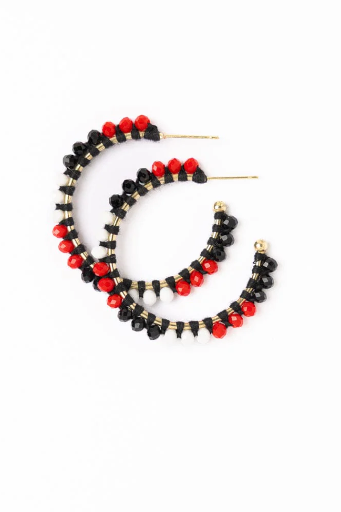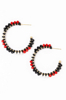 Game Day Crystal Threaded Beads Hoop Earrings Red + Black