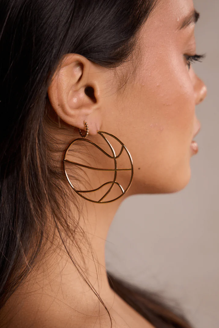 Elevate your gameday look with our basketball hoops - from the front they look like a thin hoop, but from the side they're sporty! Your choice of 14k gold plated or rhodium-plated silver.
