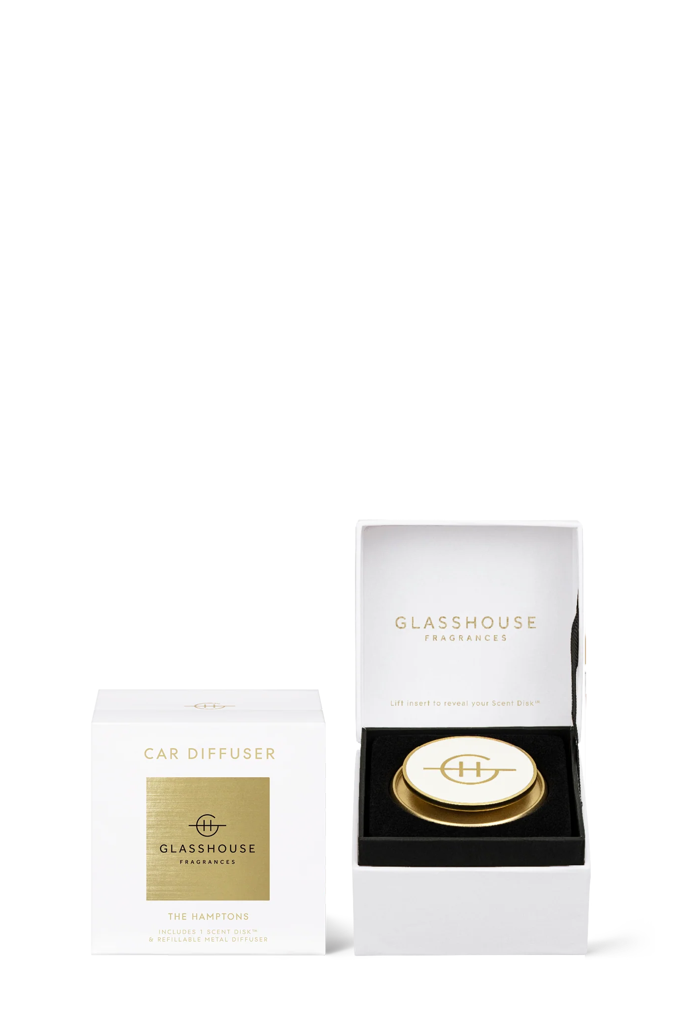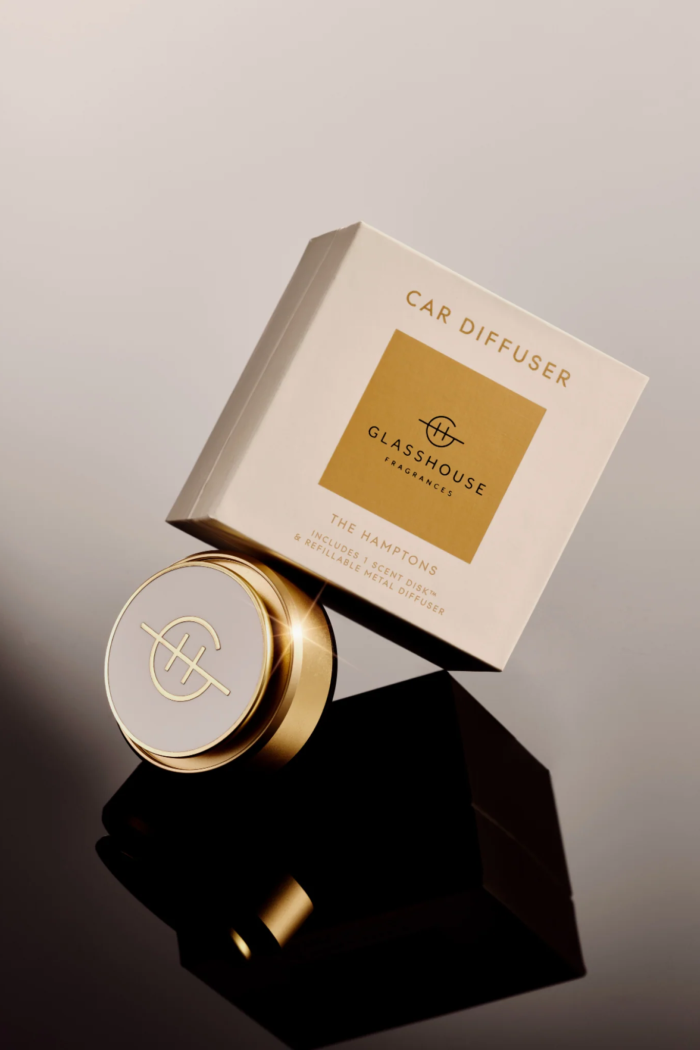 GLASSHOUSE FRAGRANCES Gold Car Diffuser with 1 Replacement Scent Disk -