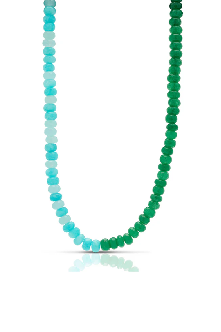 Add a touch of effortless elegance with the Hallie Blue and Green Beaded Necklace from HJANE Jewels. This versatile piece features a delightful mix of soft aquamarine and rich emerald rondelle jade beads, creating a subtle yet captivating color story. Completed with durable 18k gold-plated stainless steel chain and clasp, it’s designed to bring a playful pop of color to any outfit, from casual days to chic evenings.
