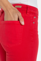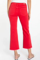 A fresh update to a favorite fit. This mid-rise crop flare features a clean silhouette with a subtle slit hem that adds movement and a modern edge. Finished in Cherry Rose for a bold pop of color that stands out wherever you wear it.